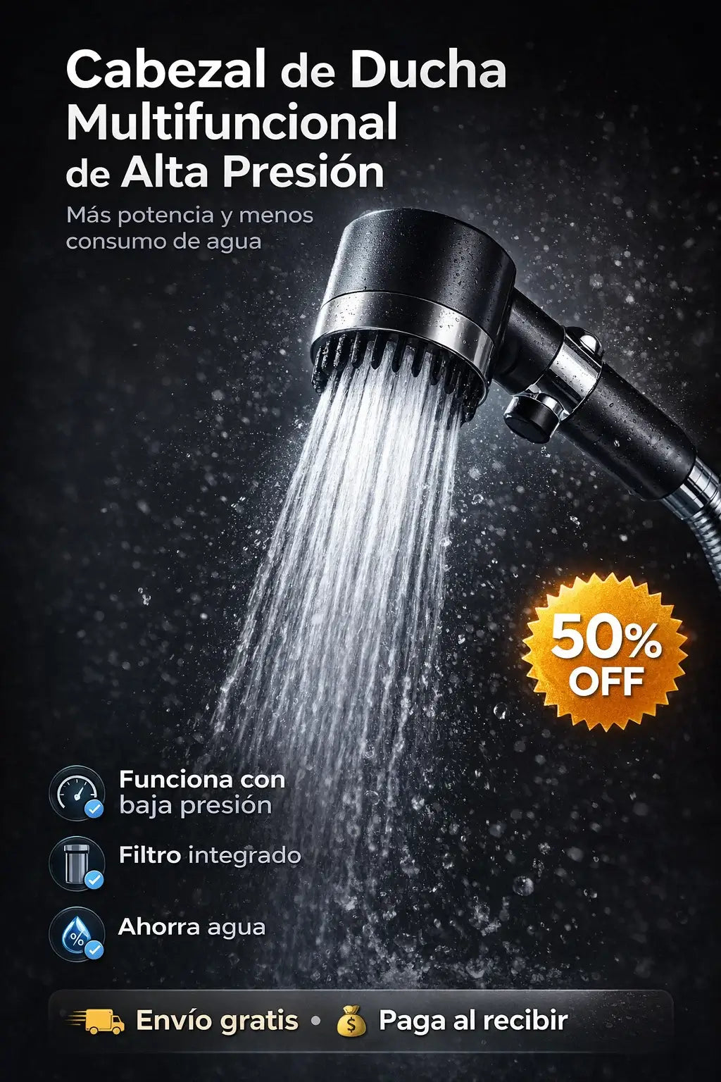 Sí 👍, este cabezal está diseñado para optimizar el flujo del agua y concentrarlo en microboquillas, lo que hace que el chorro se sienta más firme y uniforme 💦. Es ideal para hogares donde la presión es baja o irregular, ya que mejora la sensación de potencia sin necesidad de instalar bombas ni hacer cambios en la tubería 🔧.