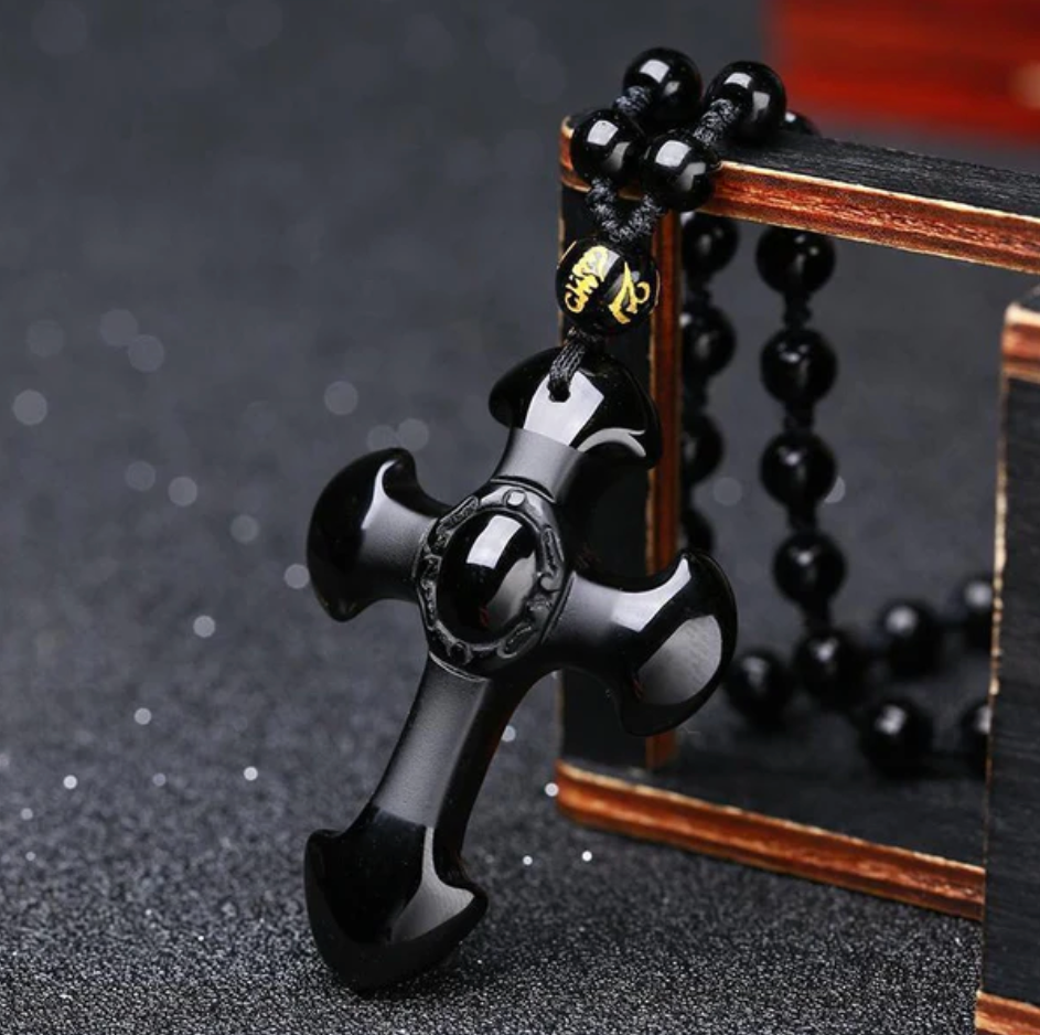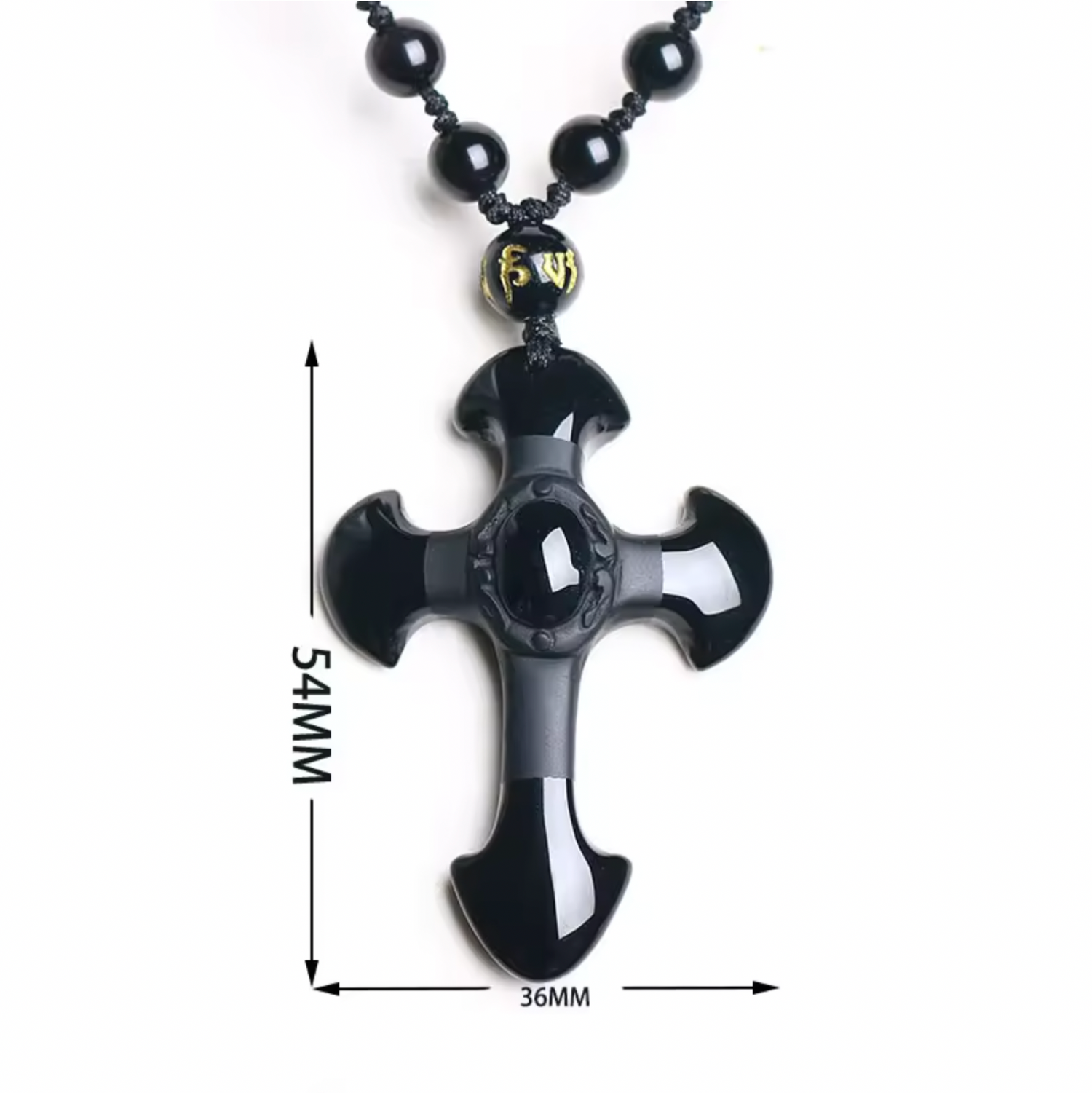 Nuestra Cruz ha sido elaborada con Obsidiana pulida. Conocida por sus propiedades protectoras, se cree que la obsidiana protege contra la negatividad y promueve la sanación emocional.